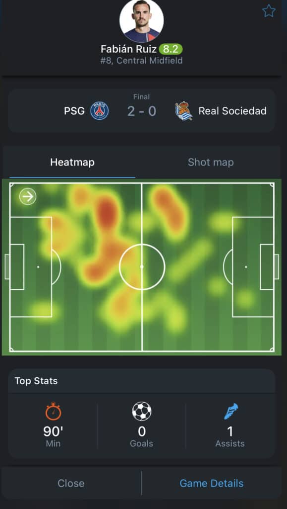Fabian Ruiz showcased his reliability and effectiveness for PSG against Sociedad with a solid performance. Despite not finding the back of the net himself, Ruiz contributed significantly with an assist, demonstrating his ability to create scoring opportunities for his teammates. His passing accuracy was outstanding, completing 96% of his passes, including four accurate long balls out of five attempted, showcasing his vision and ability to switch play effectively. Additionally, Ruiz won the majority of his ground duels, highlighting his strength and determination in midfield battles. His defensive contribution was notable as well, with three interceptions and two successful tackles, indicating his ability to disrupt opposition attacks and regain possession for his team. Since his acquisition from Napoli in 2022, Ruiz has consistently proved to be a valuable asset for PSG, providing stability and quality in midfield.